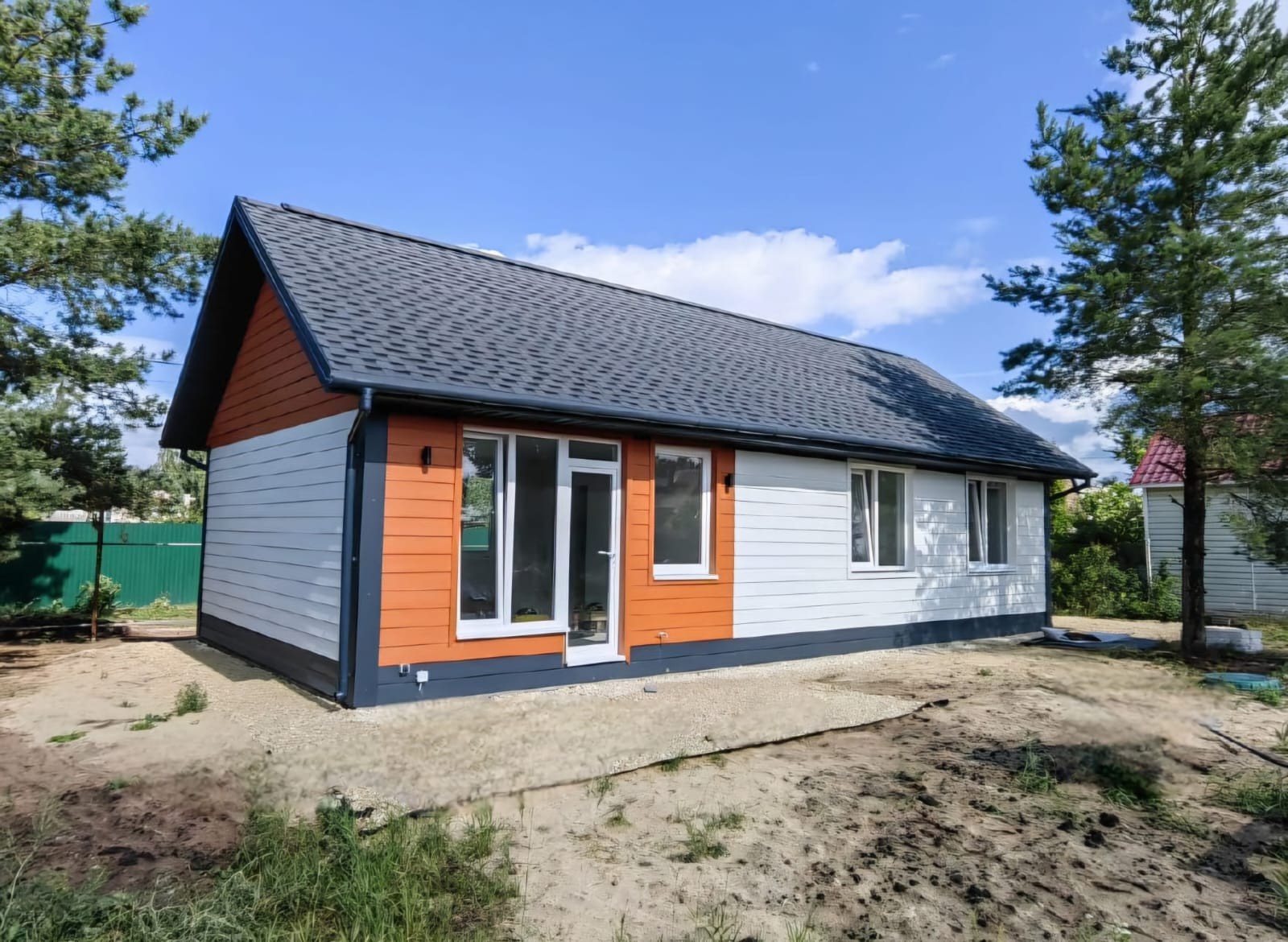 Фибросайдинг применяется в качестве декоративного материала для отделки фасада дома и придания эстетического вида ограждениям, заборам, баням, беседкам и другим постройкам.